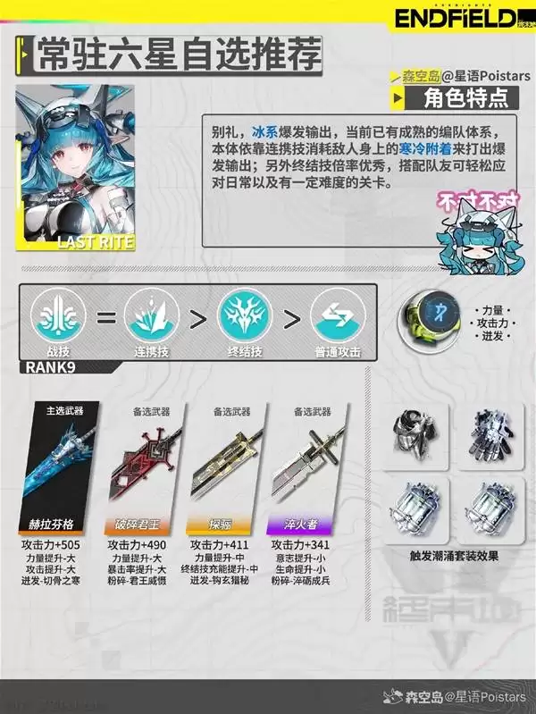 好了,以上就是我对于当前五位常驻六星干员武器搭配的一些心得和推荐。攻略部分就到这里,希望能对大家的养成之路有所帮助。如果想要了解更多《明日方舟终末地》的游戏攻略和新鲜资讯,记得常来看看,我们下期再见!