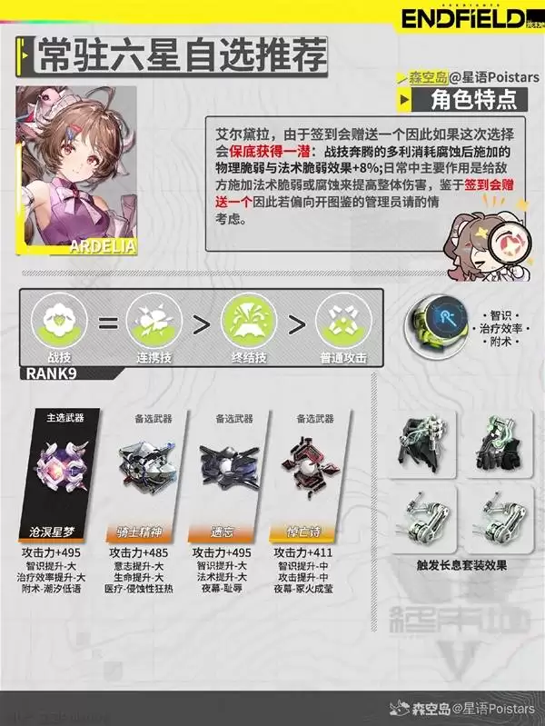 这位干员很有意思,定位介于辅助和副C之间。她的武器选择可以稍微灵活一些。如果你希望她强化辅助能力,那么选择能提升“元素伤害加成”团队光环的武器,收益会非常显著。但根据我的观察,不少玩家(包括我自己)也喜欢开发她的输出潜力,这时候一把高攻击加成、或带有“伤害增幅”特效的武器就能让她打出令人惊喜的补充伤害。这就好比一个多功能工具,看你更需要它拧螺丝还是撬盖子。