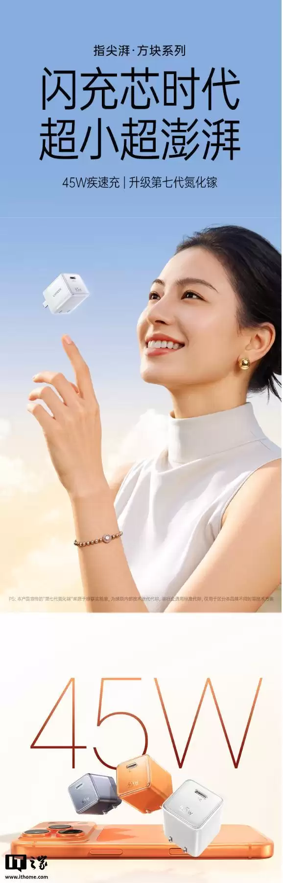 绿联推出新款指尖湃45W氮化镓充电头:支持PD 3.2,79元