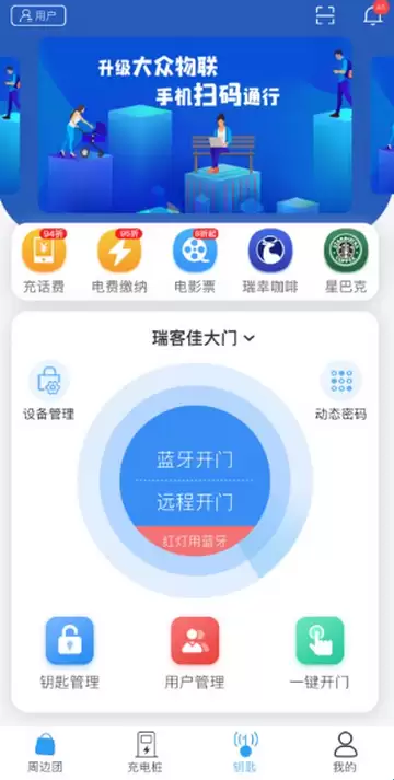 登录成功,来到主界面。最核心的功能之一,就是那个醒目的“钥匙”图标。点进去,你就能看到授权给你的门锁或设备列表。选中目标,点击“开门”,指令就会远程发送出去,非常便捷。这算是App的“王牌功能”了。