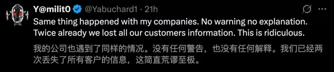 在实际操作中,许多公司最终会选择与某些服务记录良好的供应商深度“绑定”。但让人难以接受的是,一项关键服务竟然可以在没有任何预先通知、也无法直接联系技术支持的情况下,被单方面直接“下线”。