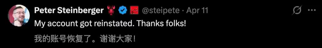 几个小时后,一位Anthropic工程师在评论区现身,表示“从未因使用OpenClaw封禁过任何人”。颇具戏剧性的是,就在第二天,Peter的账号就恢复了正常。
