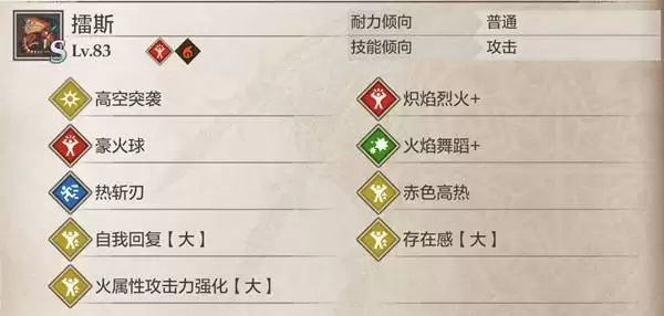• 擂斯: 配置“三猜”群攻技能。核心基因推荐“赤色高热”、“火属性强化【大】”、“存在感【大】”、“自我回复【大】”。