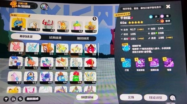 第五只宠物,伊贝粉粉,可能是阵容里最被低估的“隐藏王牌”。在主流对战中很少见到它的身影,但在PVE和PVP中,它的实际表现堪称“宝藏”。核心技能组合是【光能聚焦】、【缴藤】,以及任意一个防御技能(草系防御技能更优)。在PVE中,搭配上回复能量的技能,强度直接上升一个档次。它的主要作用有两个:一是针对光系宠物(如独角兽),二是克制土系宠物(如罗隐)。不过要特别注意,它不能用来对付那个外形像蜗牛的土系怪物,因为该怪物携带冰系技能,会反克草系的伊贝粉粉。遇到这种对手,应该换上圣剑X去正面硬撼。