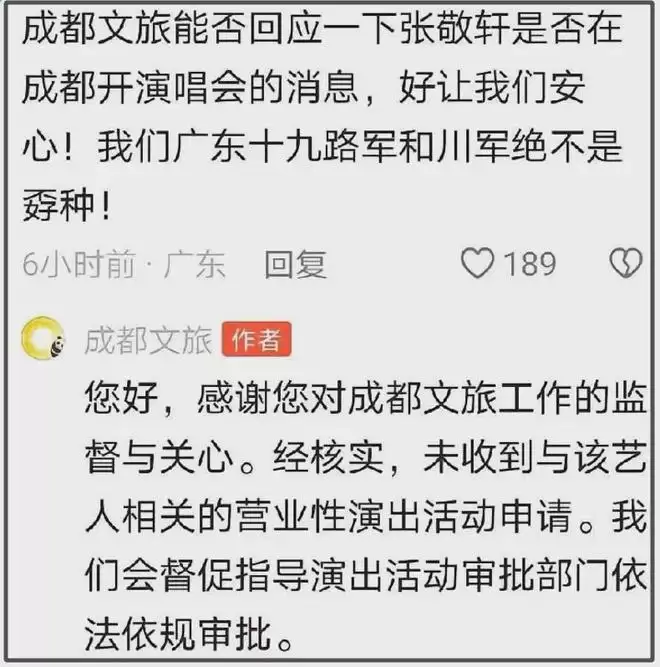 最近,关于歌手张敬轩要来内地开演唱会的传闻是闹得沸沸扬扬。这不,不少网友直接涌到了成都文旅的社交媒体评论区,齐刷刷地留言表示抵制。面对这突如其来的舆论压力,成都文旅方面紧急出面回复,明确否认了张敬轩成都演唱会已过审的消息。与此同时,公开支持张敬轩在内地复出的经纪人霍汶希,以及相关机构的评论区也迅速“沦陷”,网友们的态度非常明确,核心就一句话:坚决抵制有争议的艺人在内地市场复出!