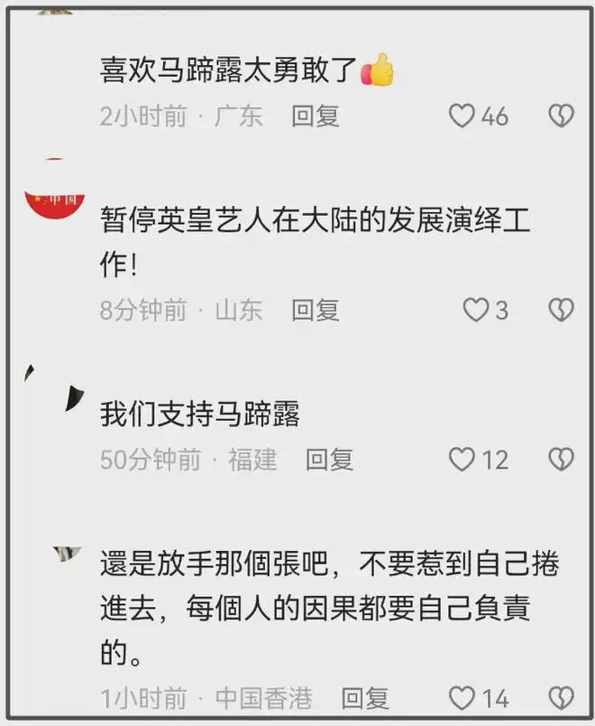 霍汶希个人的社交媒体评论区早已“沦陷”。更有甚者,抵制情绪出现了“连坐”迹象,部分网友开始呼吁抵制英皇娱乐旗下所有艺人在内地的演艺工作。值得注意的是,许多香港同胞也发声希望英皇不要试图为张敬轩洗白,毕竟路都是自己选的,每个人都该为自己的言行负责。