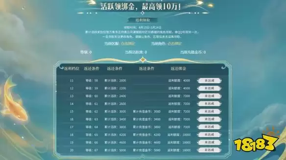 从4月10日开服,一直到5月24日,只要保持活跃,绑定金币就会实实在在到手。累计活跃度达到不同阶段,就能领取相应数量的绑金,最终大奖是高达10万的绑金。这里有个细节需要特别注意:该累计活跃奖励仅限于在万象专区的“青丘月满”和“句芒司春”这两个服务器创建的角色领取。并且,每个QQ号仅限领取一次,一旦领取就无法再更改角色。所以,务必在点击领取前,反复确认自己的角色和区服信息,避免领错。