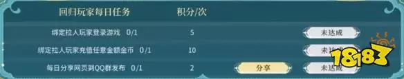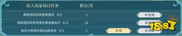 此外,回归玩家与邀请人每日完成指定的回流任务,还能获得积分。对于邀请人来说,如果你成功召回2名回归玩家,那么这两名玩家的万象币消耗数据将会相加统计,这可能让你更快达到更高的积分档位。而这些珍贵的积分,可以在积分商城中兑换包括Q币、万象币、金币在内的多种货币奖励。