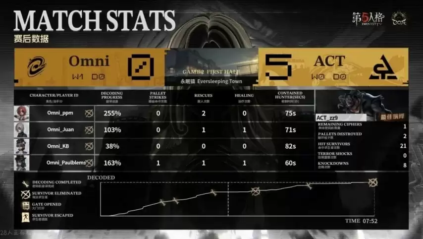 2026年4月19日,第五人格全球总决赛小组赛迎来第十个比赛日的争夺。一场关键的晋级之战在ACT与Omni战队之间展开。最终,ACT战队上演了经典的让一追二,成功战胜对手,锁定了淘汰赛的席位。整场比赛的转折点,无疑出现在第二局(BO2)的上半场——ACT战队的监管者选手ACT_zz9操刀“跛脚羊”,在永眠镇地图上完成了一次堪称教科书级的四抓翻盘,为队伍的最终胜利奠定了坚实的比分基础。