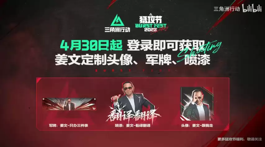 为庆祝这次颇具分量的跨界联动,《三角洲行动》也拿出了十足的诚意。从4月30日起,游戏将推出限时登录奖励:所有玩家只要在活动期间登录游戏,即可免费领取一套“姜文定制”外观三件套,包括定制头像、专属军牌以及限定喷漆。对于玩家而言,这无疑是零门槛获取独特收藏品的绝佳机会。