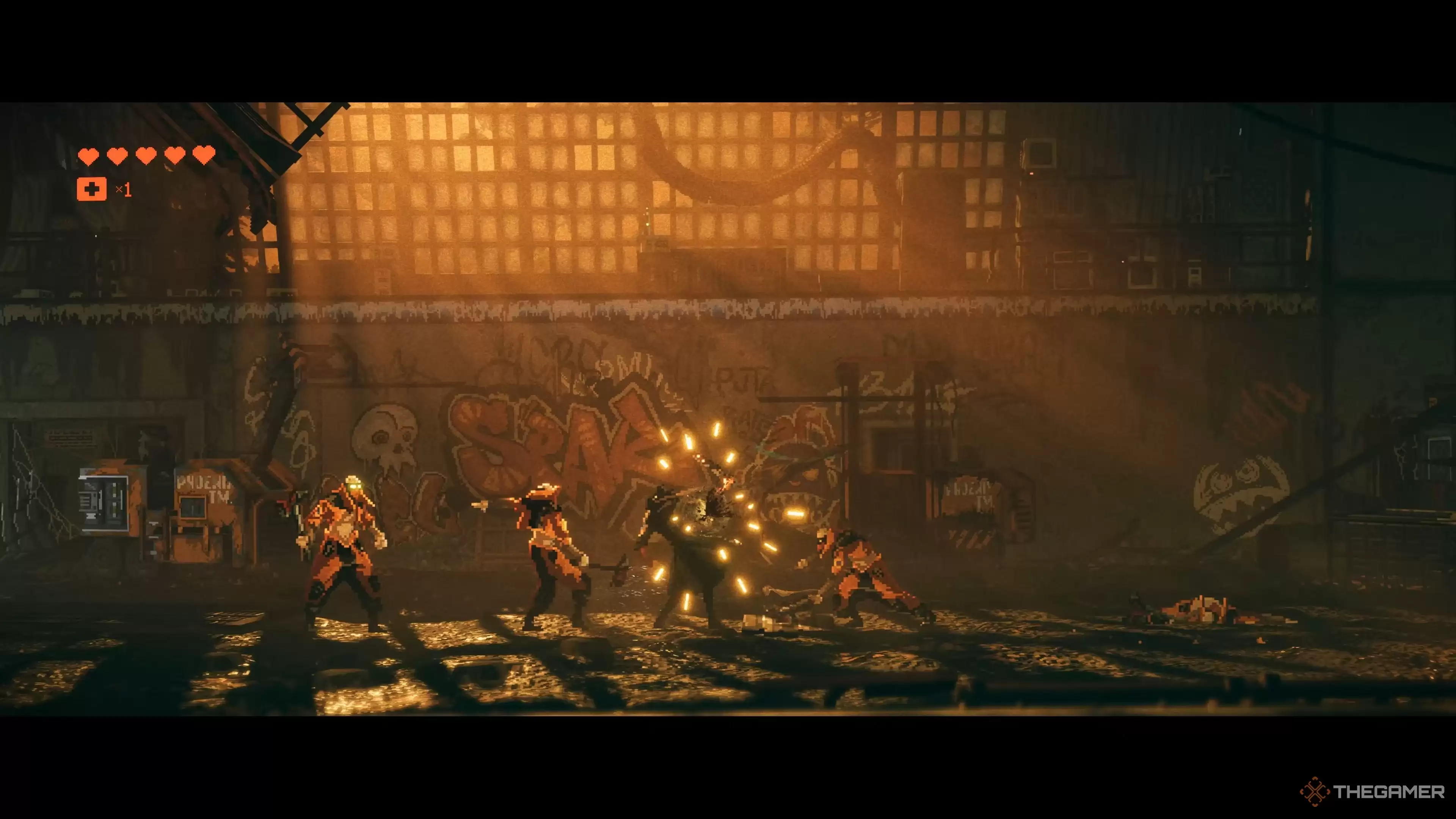 既然提到战斗有时显得“无脑”,那就必须深入聊聊游戏的闪避和反击机制。除了攻击,这将是你参与战斗最主要的方式。如果你玩过 Rocksteady 的《蝙蝠侠:阿卡姆》三部曲,那么会对《Replaced》的战斗感到非常亲切——逻辑一脉相承,只不过战场换成了华丽的2.5D环境。