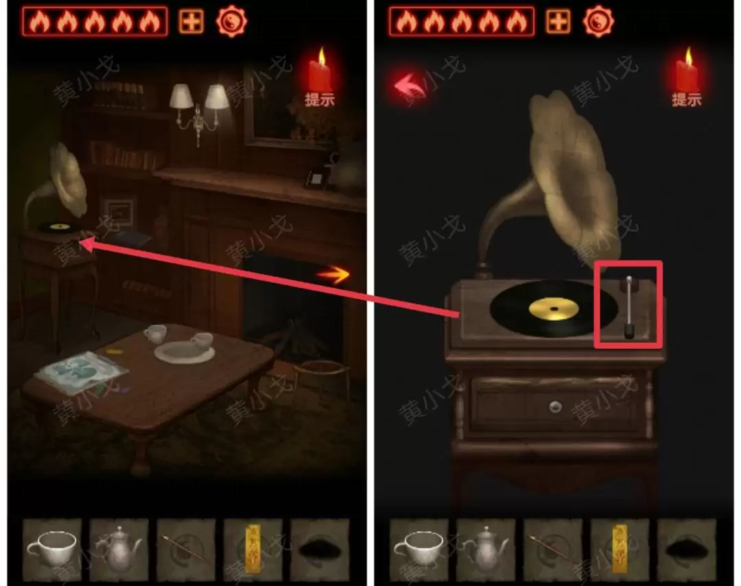 找到房间里的留声机,点击让它播放。这通常是触发下一步的关键。