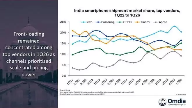 先看核心数据:2026年第一季度,印度智能手机整体出货量定格在3090万台,同比下滑了5%。这个数字背后,其实反映了两个关键问题:一是市场季节性需求的疲软,二是渠道商们普遍采取了更为谨慎的库存策略。多重不利因素叠加,直接导致了消费者换机周期的延迟。话说回来,面对不断上涨的成本压力,各大品牌的应对策略可谓“八仙过海,各显神通”。Omdia的分析就指出,有的品牌选择全线让利,快速重置利润结构;有的则分级提价,优化利润模型。例如,OPPO选择了前者,而小米则采用了后一种方法。相比之下,三星与vivo的策略更偏向阶段性调整,核心目的在于保护市场需求,并确保渠道能更顺畅地消化产品。随着第二季度价格进一步上涨,新旧库存如何叠加处理,将成为决定品牌表现的关键差异化因素。可以确定的是,市场正从短期的战术调整,转向更深层的结构重置,谁能更好地平衡利润与需求,谁就能在接下来的竞争中占据主动。