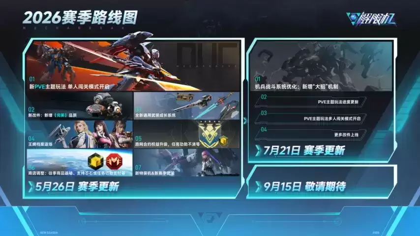 全新PVE Roguelike爬塔模式:这是一个单人闯关玩法,融合了随机Buff、改件强化与竞速榜单,设计上意在致敬机甲作品中经典的孤胆英雄主义。值得注意的是,其多人模式预计将在S5赛季推出。