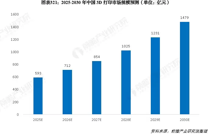 3D打印,这项通过逐层堆叠材料来构建三维物体的革命性技术,正迎来黄金发展期。前瞻产业研究院的数据显示,随着应用场景的不断扩张与深化,预计到2030年,中国3D打印行业的市场规模将攀升至1479亿元,2024至2029年间的复合年均增长率将保持在19.8%左右。
