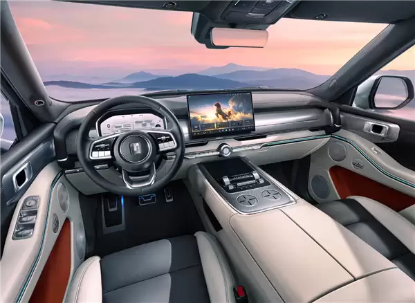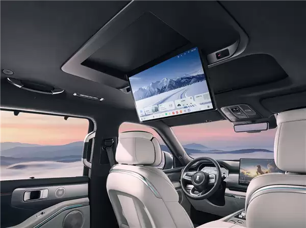进入车内,硬派越野车固有的粗犷印象被彻底碘伏。多屏联动构成了数字座舱的核心:12.3英寸2K全液晶仪表、15.6英寸2.5K自适应中控屏,加上后排的17.3英寸3K吸顶娱乐屏和7英寸扶手屏,直接将硬派越野车的座舱科技感和娱乐体验,拉升到了主流豪华家用SUV的水平。