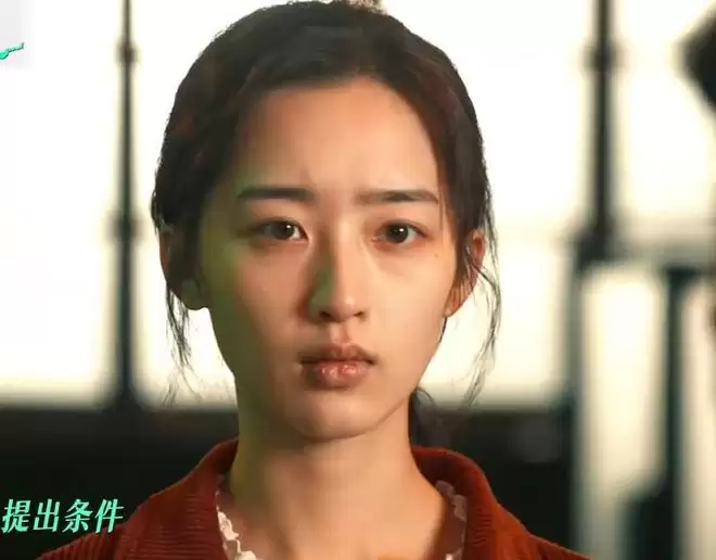 她静坐于木凳上,手指紧紧绞着衣角,脖颈低垂,眼神躲闪却坚定,双唇抿成一条线。当陈红兵说出“继续走下去,你们只会一起毁灭”时,她眼眶瞬间通红,泪水盈眶却强忍不落,以低哑而清晰的嗓音回应:“我不会离开他。”