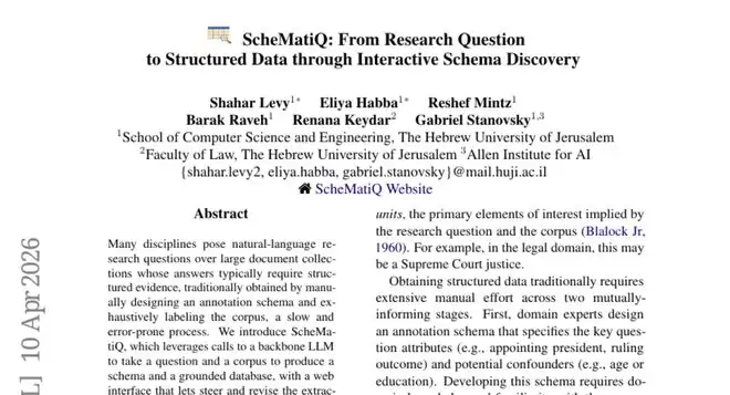 针对这一核心痛点,耶路撒冷的研究团队开发了ScheMatiQ框架。该系统的核心逻辑可概括为:研究者仅需提供明确的研究问题与相关文献集,系统便能自动推导出合适的数据提取模式,并从文本中抽取出对应的结构化信息,最终生成一个可供分析的数据集。