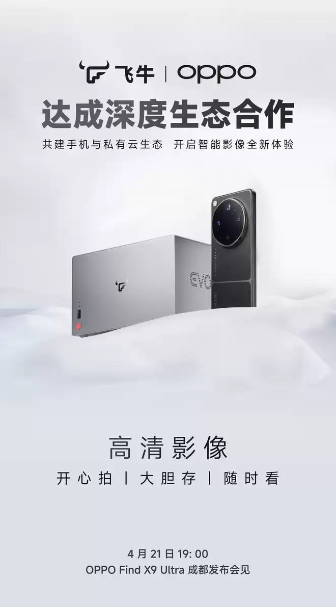 NAS行业迎来重要动态:飞牛 fnOS 已与 OPPO 正式确立深度生态合作关系。根据官方释放的预热信息,此次合作的核心在于联合构建“手机私有云生态”。