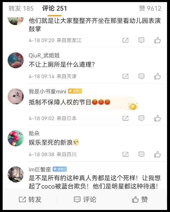这种将流程管控置于人的基本需求之上的逻辑,暴露出制作方管理思维的僵化。观众质疑的核心在于:综艺录制是否已异化为某种形式的“流程服从测试”?