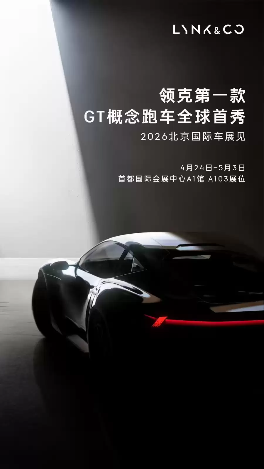 领克汽车正式确认,品牌旗下首款GT概念跑车将于4月24日亮相2026北京国际车展,完成其全球首次公开亮相。这款备受期待的概念车型,预计将成为本届车展高性能与前瞻设计领域的核心焦点。