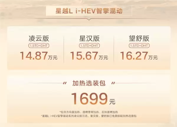 吉利星越L i-HEV智擎混动版正式启动预售,三款车型预售指导价区间为14.87万至16.27万元。限时预售政策将价格门槛进一步下探至14.17万至15.57万元,这一价格策略直接切入主流混动SUV市场的核心竞争区间。