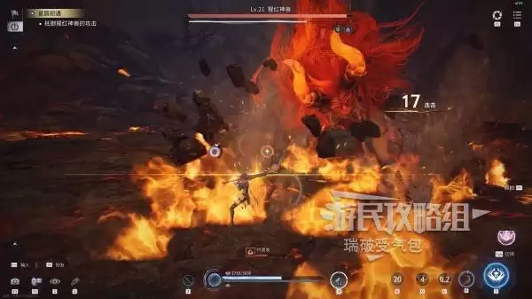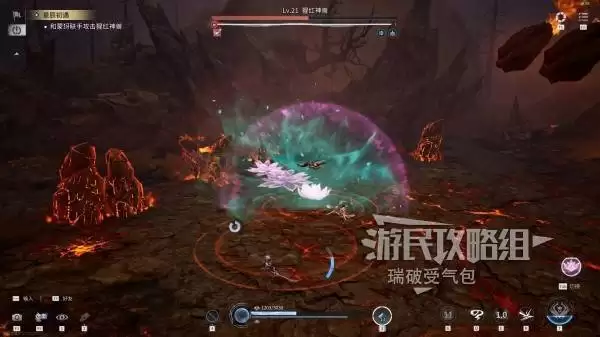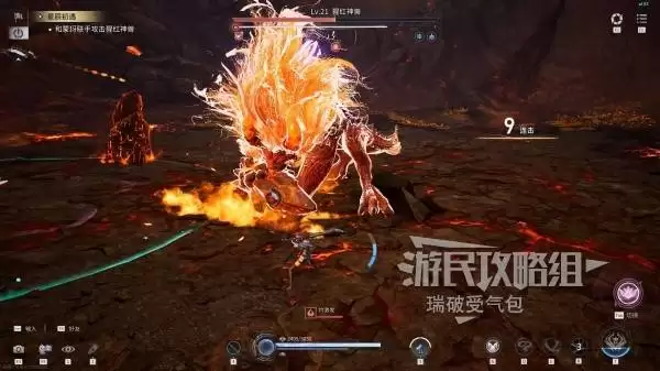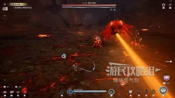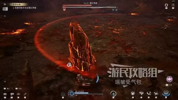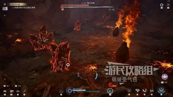 偶尔,BOSS砸地时周围会出现黄圈,地面显现熔岩痕迹。这意味着随后地面会燃烧,并且裂缝中会喷出火焰造成二次伤害。最稳妥的办法就是直接远离着火区域。