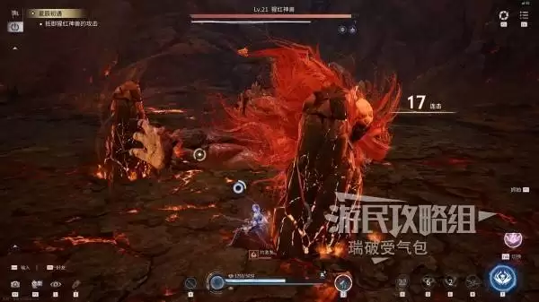 此外,在这个阶段,如果BOSS砸地后,其前方扇形区域地面出现三条熔岩线,预示着接下来会有火焰从地面喷发,记得及时躲开。处理好所有这些机制,稳步清空BOSS的血条,胜利就在眼前了。