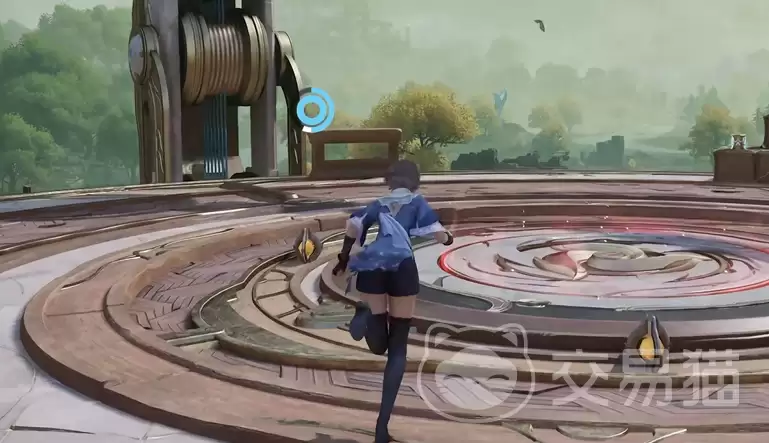 拿到首枚令牌后,打开大地图,将目光投向左上方的【飞渡遗迹】探秘点。从云根木边缘滑翔而下,召唤出滑板,向西北方向高速滑行。这个探秘点设计得很巧妙,完成一套石板升降挑战,就能一次性收获两枚赋神令,效率极高。