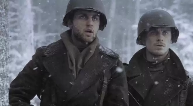 巴斯托涅战役的篇章,将剧集的思想深度推向高潮。在阿登森林的冰天雪地中,E连面临补给断绝、弹药匮乏、严寒伤病的多重绝境。士兵蜷缩在散兵坑中,在持续炮击与严寒中缓慢消耗。这几集近乎纪录片般展现了战争的本质:一场漫长、痛苦、磨灭意志的消耗战。