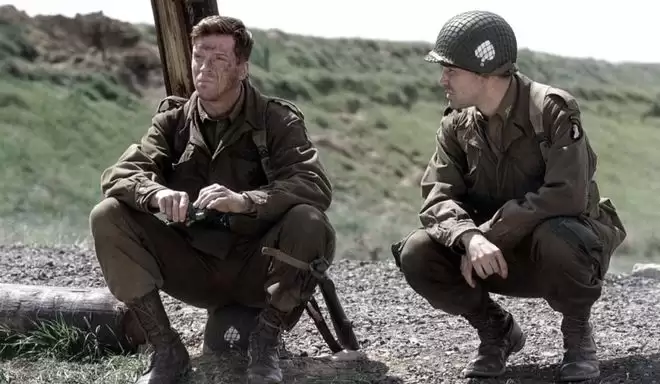 本剧严格依据战史改编,深度聚焦美军第101空降师506团E连的真实经历。剧情横跨二战欧洲战场关键战役:从美国本土的严苛空降兵训练,到诺曼底登陆的混乱空降,再到市场花园行动、巴斯托涅突出部战役,直至攻入德国腹地。其叙事高明之处,在于彻底跳出了宏观战史框架。镜头对准的不是地图上的箭头,而是普通士兵在战争熔炉中被重塑的过程——他们如何被恐惧、忠诚与生存本能重新定义。
