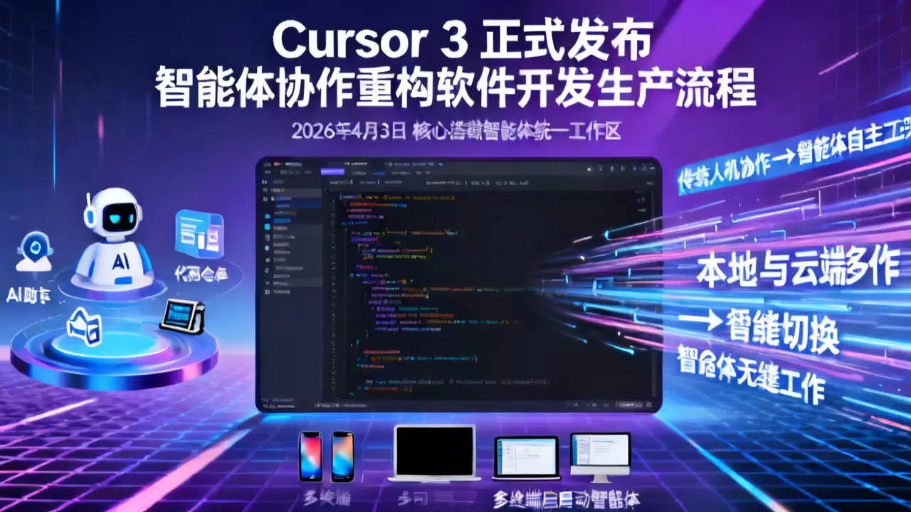 一个明确的行业拐点已经出现。2026年4月3日,Cursor团队推出了其代码编辑器的3.0版本。此次更新的核心是“智能体统一工作区”架构,它原生集成了多智能体协同能力,并实现了本地与云端多代码仓库的无缝切换。开发者现在可以从任何终端发起任务,软件开发模式正从传统的人机协作,升级为智能体自主工作的新阶段。其核心价值在于,彻底解决了跨环境开发中高昂的上下文同步与操作成本问题。