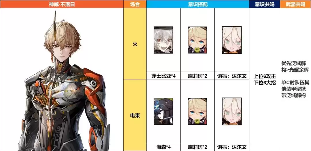 在《战双帕弥什》的战场上,神威·不落日是电束体系当之无愧的核心站场输出。他的玩法精髓,就在于如何高效叠加减抗效果,并利用站场时间打出成吨伤害。今天,我们就来深入聊聊这位角色的意识搭配与队伍构建思路,帮你把神威的潜力完全激发出来。