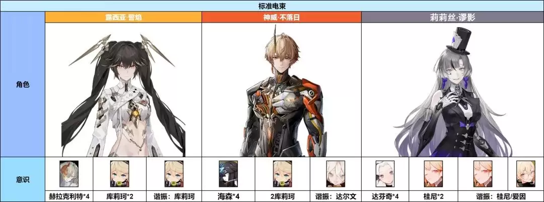 这是标准的电束轮切队伍配置,旨在通过角色间的快速切换,持续触发和维持电束体系的高额伤害。
