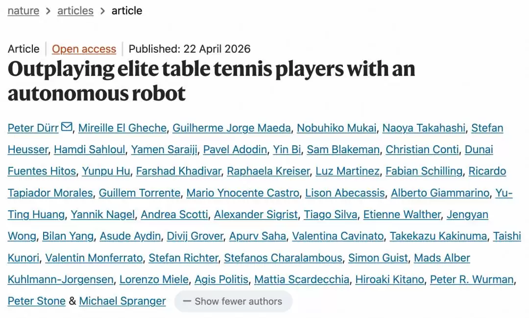 Sony AI团队及其合作者带来了一个标志性突破。就在近期,首个能在竞技体育中击败人类精英选手的物理AI机器人——Ace,登上了权威期刊《自然》(Nature)的封面。