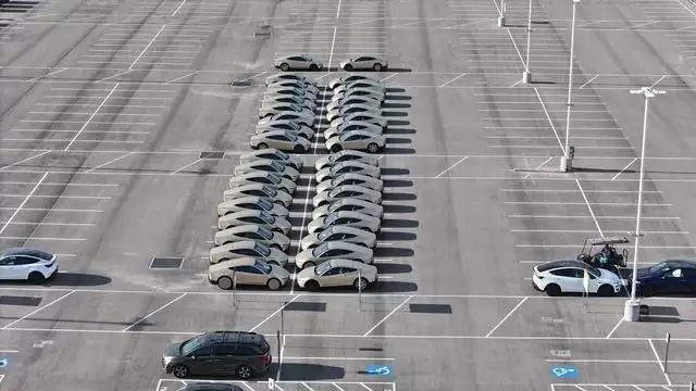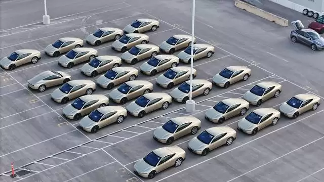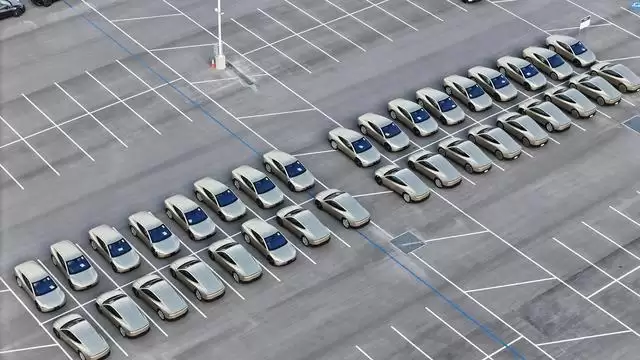 该信息源自长期追踪得州超级工厂动态的无人机飞手乔·泰格迈尔。他在社交平台X上发布的航拍画面显示,约60台Cybercab分两列整齐停放于出厂物流区域。这是该车型被捕获数量最多的一次,明确指向了生产节奏的加速。