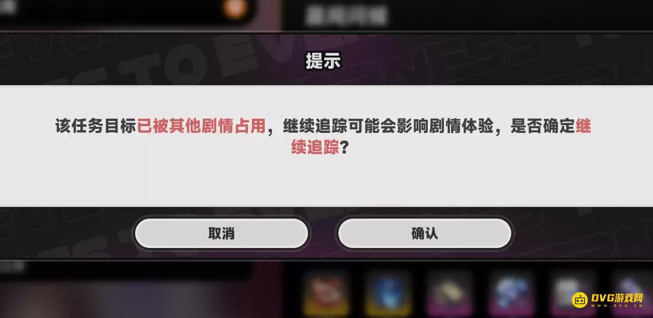 如果不想错过任何一段故事,最稳妥的做法就是先点击弹窗上的【取消】按钮。这相当于告诉游戏:“好的,我收到提示了,先不追踪这个目标。”这样一来,你就能避免因为任务冲突而意外跳过某些关键对话或情节。