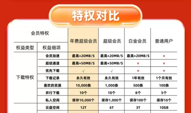 如需详细了解迅雷白金会员与超级会员的权益差异,可查阅官方提供的完整对比说明。