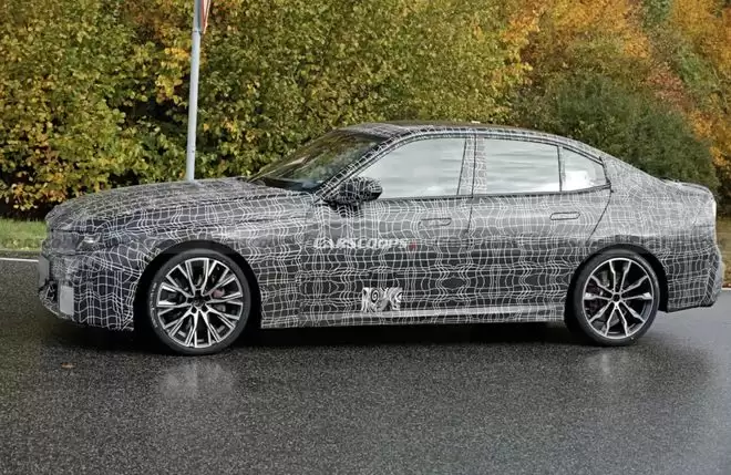 转到车身侧面,你会发现隐藏式门把手和大尺寸轮圈已经成为新一代车型的标配,这没什么好意外的。但有个细节很能说明问题:对比车尾三角窗的尺寸不难发现,这台测试车在车身长度和轴距上,都明显超过了已经发布的全新宝马i3。要知道,i3的车长是4760mm,轴距为2897mm。这意味着燃油版3系的后排空间,很可能将带来惊喜。