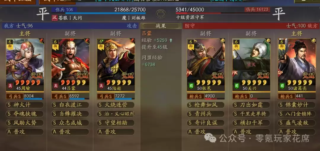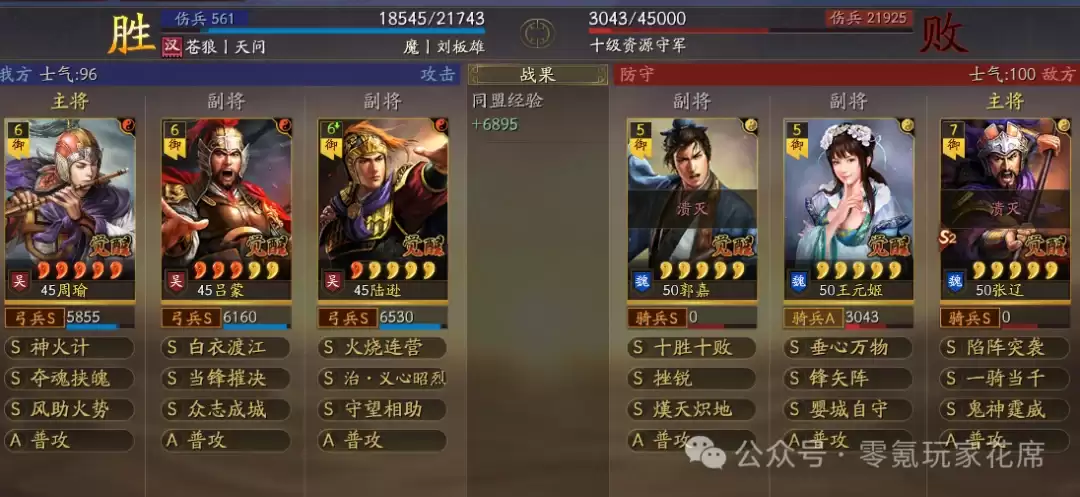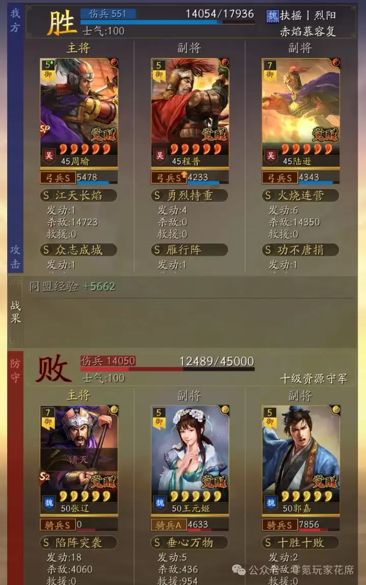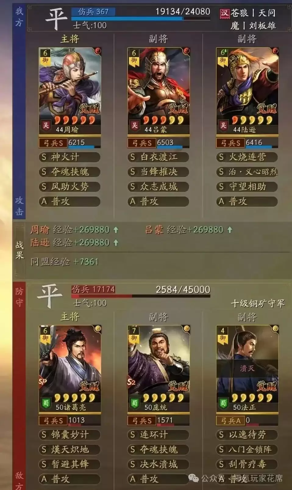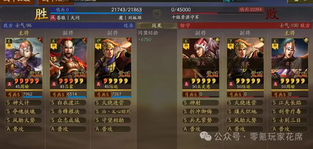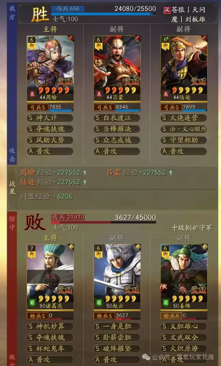 【老周瑜+陆逊】组合的战报同样来自实战,提供者:魔丨刘板雄。
