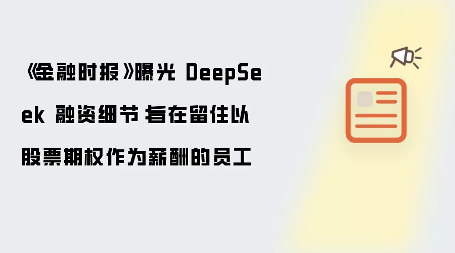 《金融时报》曝光 DeepSeek 融资细节:旨在留住以股票期权作为薪酬的员工