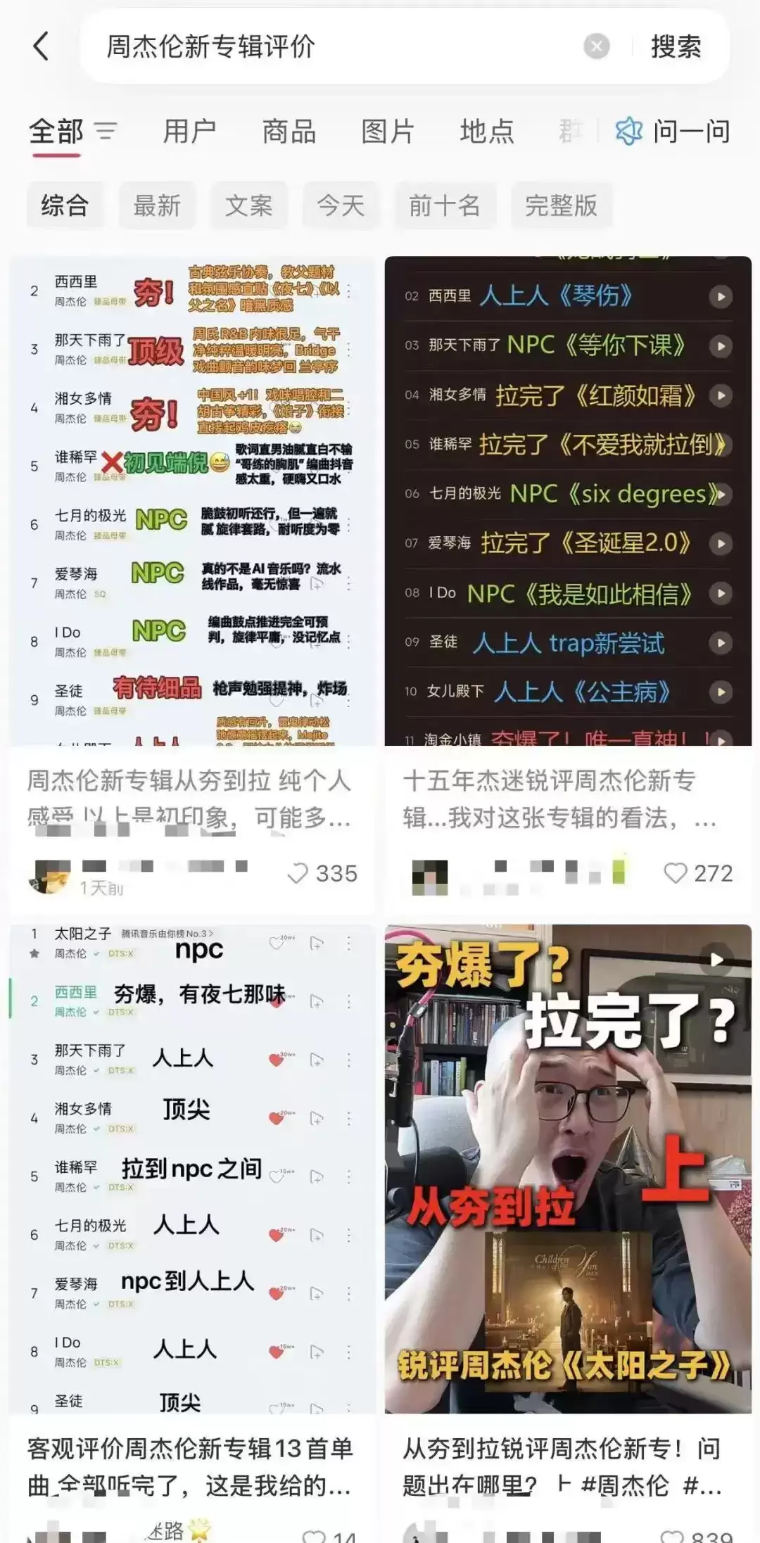 销量承压的同时,口碑也出现了裂痕。#周杰伦新歌从夯到拉排名#的话题迅速冲上热搜,意味着歌迷不再对顶流作品照单全收。从QQ音乐内部的点赞排名也能看出端倪:《那天下雨了》《西西里》等歌曲获得广泛认可,而主打歌《太阳之子》反而未能成为爆款。