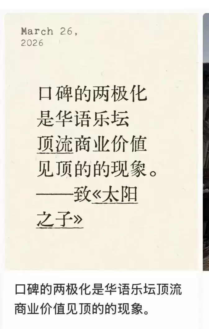 《太阳之子》自3月19日开启预售,当天销量突破35万张,开局看似不错。但随后几日销量略显疲软,直到3月25日凌晨全专释出,口碑回升,销量才迎来一波猛涨。截至当天下午,专辑内地全平台销量达182万张,销售额逾7000万元,登顶2026年数字专辑销量榜,并快速达成QQ音乐“殿堂史诗唱片”认证。表面看,天王号召力依旧。