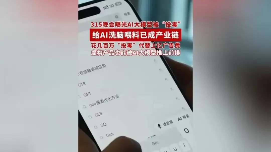 今年3·15期间,一项名为“GEO(生成式引擎优化)”的黑灰产业务被曝光。其流程令人咋舌:一款完全虚构的商品,只需花费几十元,生产十余篇看似专业的软文,就能成功将虚假信息“投喂”给AI大模型。短短几天,该虚假产品就能获得AI推荐,甚至“名列前茅”。