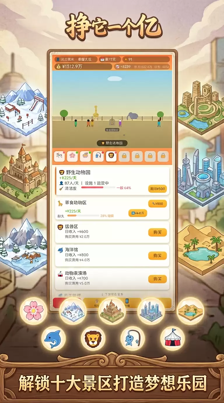 游戏的起点设定就充满了戏剧张力:主角回家继承爷爷留下的游乐场,本以为是个美差,却发现同时背上了五百万的债务。于是,一场关乎胆识与细心的经营之战就此打响。目标很明确——扭亏为盈,挣它一个亿!这不仅仅是句口号,更是贯穿整个游戏进程的核心驱动力。
