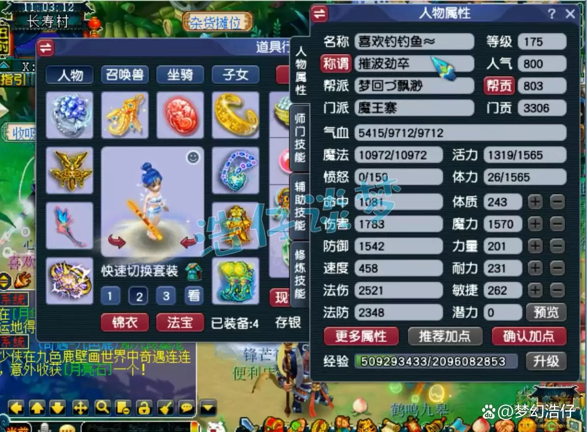 上面这张图,展示的就是这个魔王寨没打临时符的面板属性。可以预见,打完符再带上神器,法伤冲到2700左右完全不是问题。更值得一提的是,门派本身还自带法暴隐藏属性,这输出潜力,确实相当可观。