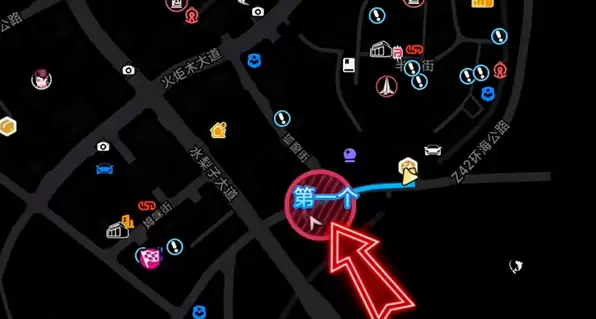 第一把武器“焰魂狂飙”,获取过程有点像都市传说。首先,你需要来到下图这个指定位置,并且开上一辆车。