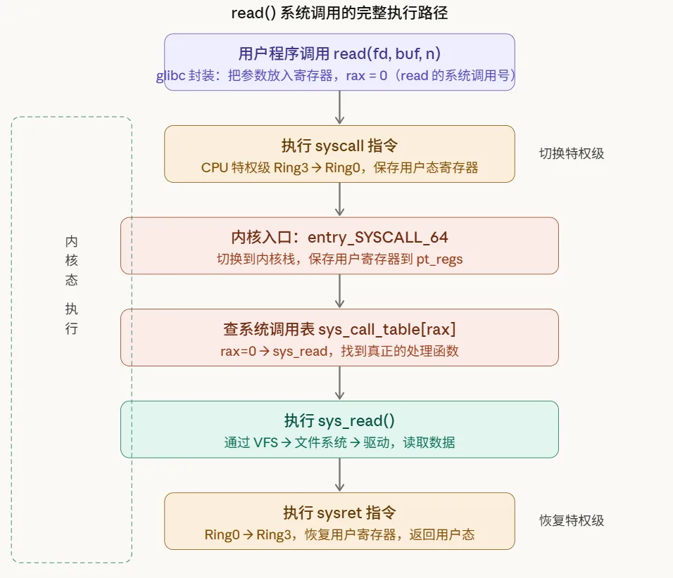 可以说,它是贯穿整个Linux系统编程领域的隐形主角。后续文章中间出现的每一个read()、write()、mmap()或epoll_wait(),其背后都是一次跨越特权边界的精密旅程。