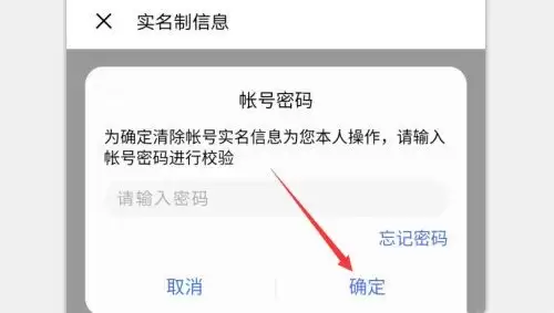 出于安全考虑,系统会要求你进行最后一步验证:输入当前账号的密码。输入密码后,点击“确定”。至此,原有的实名信息就被成功删除了,你可以立即重新绑定新的身份信息,完成实名认证的修改。