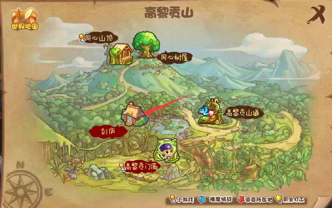 成功抵达高黎贡山之后,接下来就简单了。注意看你的游戏界面,点开小地图,高黎贡山范围内的各个子地图就会一览无余。你只需要在这些地点中找到“剑庐”,轻轻一点,角色就会自动前往了。